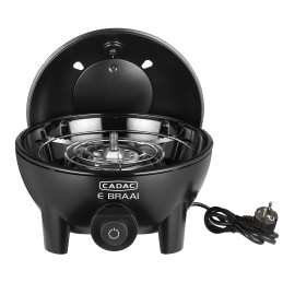 E-Braai to grill elektryczny z precyzyjną regulacją temperatury. Grzałka o mocy 2,3 kW zapewnia szybkie nagrzewanie. Zdejmowany szklany pierścień chroni grzałkę przed kapiącym tłuszczem. Dzięki unikalnej technologii „spot-on-grilling” temperatura jest mierzona bezpośrednio na ruszcie grilla (zamiast pod pokrywą). Żądaną temperaturę można precyzyjnie ustawić na wyświetlaczu cyfrowym i utrzymywać ją na stałym poziomie. Temperatura E-Braai jest płynnie regulowana w zakresie od 70 do 270 stopni, co sprawia, że nadaje się do powolnego grillowania. Wyjmowana tacka ociekowa nadaje się do mycia w zmywarce i jest łatwa w czyszczeniu. Pokrywa ma cztery otwory wentylacyjne zapewniające dobrą cyrkulację powietrza i równomierne rozprowadzanie ciepła.