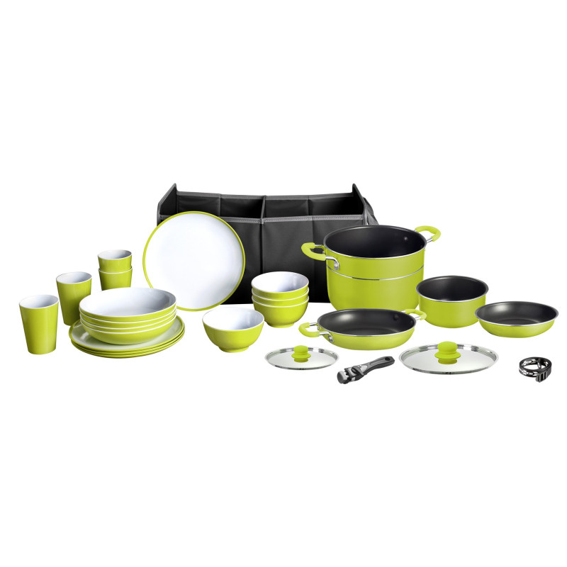 Seria naczyń stołowych Blue Ocean to kompletny zestaw dla 4 osób, wykonany z melaminy z antypoślizgowymi pierścieniami. Praktyczny pojemnik transportowy ułatwia przechowywanie. Dostosuj zestaw do swoich potrzeb!