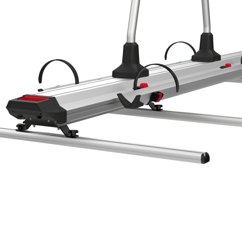 Wzmacniająca szyna montażowa Fiamma Fixing-Bar Carry-Bike to dwa profile aluminiowe o długości 240 cm (5,5 kg netto, srebrne z czarnymi akcentami). Idealna do stabilnego montażu bagażnika rowerowego Carry-Bike na słabszej tylnej ścianie kampera. Zapewnia bezpieczeństwo i trwałość.