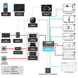 Włączanie/wyłączanie obwodów (np. oświetlenie, pompa wody, ogrzewanie) oraz gotowe „sceny” typu Home/Away/ECO dopasowane do trybu podróży/off-grid.