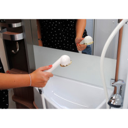 Zestaw prysznicowy Keller to kompletne rozwiązanie sanitarne z automatycznym mieszaczem podblatowym, prysznicem, 150 cm wężem, uchwytami ściennym i sufitowym. Odporny na ciśnienie 4 bar i temperaturę, idealny do kamperów – łatwy montaż w otworze 27 mm. Kompaktowy (waga 426 g) i praktyczny dla kempingu.