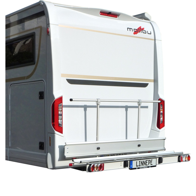 Nośnik ładunku Linnepe Scout o nośności 150 kg idealnie łączy wysoką użyteczność z nowoczesnym designem. Wyposażony w odporną aluminiową listwę świetlną, szybkozłączki bez narzędzi i opcję rozszerzenia o 2 rowery. Montaż na haku holowniczym – praktyczne rozwiązanie dla kamperów.