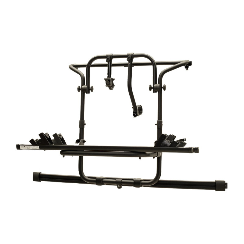 Piękny, solidny, wstępnie zmontowany aluminiowy bagażnik rowerowy. Można go zamontować bez wiercenia: bagażnik jest zaczepiany na klapie bagażnika za pomocą zacisku i mocowany oraz zabezpieczany za pomocą bocznych elementów zaciskowych. Łatwy w montażu. Nie nadaje się do Nugget Plus!