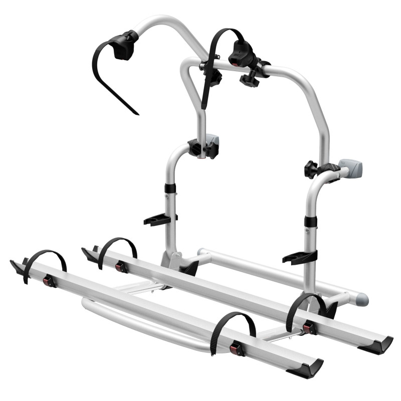 Bagażnik rowerowy Fiamma Carry-Bike dedykowany do Renault Trafic D i Opel Vivaro B (2014-2019) z podwójnymi drzwiami tylnymi. Lekki aluminiowy model o wadze netto 7,3 kg, w zestawie z blokami na e-rowery i akcesoriami montażowymi. Idealny do bezpiecznego przewozu rowerów podczas kempingowych wypraw.