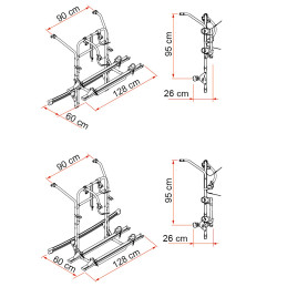 Uchwyt na rowery Sawiko Trigo Van z wąską i szeroką szyną idealnie pasuje do Fiat Ducato X250/X290 od 2006 r. Pozwala na bezpieczny transport do 2 e-rowerów o nośności 80 kg, z ergonomicznym designem, łatwym obracaniem nawet załadowanym i składaniem z blokadą. Otwarcie 100° zapewnia swobodny dostęp do drzwi – praktyczne rozwiązanie dla kamperowców.