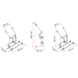 Solidny bagażnik rowerowy EuroCarry na 2 rowery, montowany na prawe tylne drzwi kamperów Mercedes Sprinter, VW LT, Fiat Ducato i Peugeot Boxer (1994-2006). Wykonany z anodowanej rury aluminiowej (waga netto 9,6 kg), z pełnym zestawem mocowań w zestawie. Idealny do bezpiecznego transportu na kempingu – szerokość 125 cm, wysokość 129 cm.
