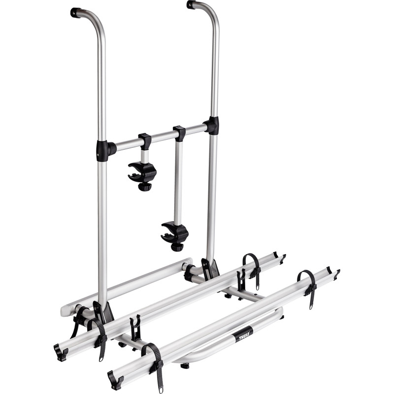 Bagażnik rowerowy Thule Lift 12 V na 2 rowery (do 50 kg) z elektrycznym podnoszeniem na przycisk 12 V – idealny na kemping i wyjazdy kamperem. Łatwe mocowanie na wygiętych szynach z zamykami, możliwość rozszerzenia do 3 rowerów. Kompaktowy z aluminium, szer. 131 cm.
