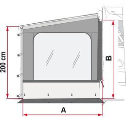 Ściana boczna Fiamma Side W Pro F35 Van (szara) do markiz F35pro z dużym oknem i przedłużeniem podłogi. Z wodoodpornego, UV-odpornego winylu, montaż z teleskopowymi słupkami po obu stronach pojazdu. Waga 4,2 kg, idealna ochrona przed pogodą dla kamperów. (198 znaków)