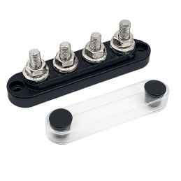 Szyna zbiorcza 48V 150A z pokrywą to wysokiej jakości element przeznaczony do dystrybucji dużego prądu w instalacjach elektrycznych pojazdów, łodzi, systemów solarnych i off-grid. Wykonana z trwałych materiałów — przewodnika metalowego i podstawy z ognioodpornego tworzywa ABS.