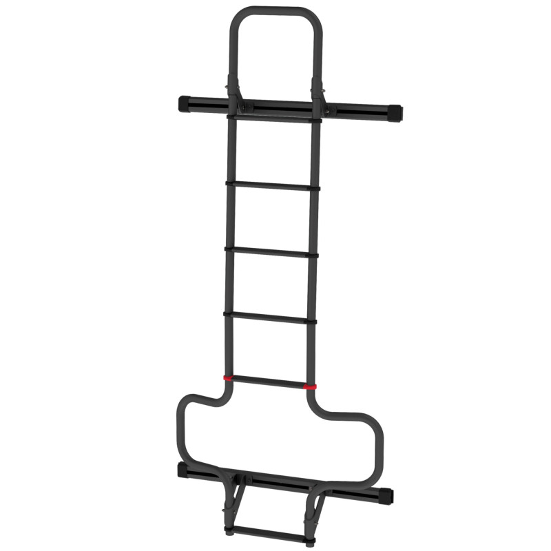 Drabina alkowa alu-line Basic (178 cm, alu, 6,6 kg) z poziomymi szczeblami zapewnia bezpieczne wejście do alkowy wg normy DIN EN 1646-1:2012, niezależnie od kąta. Składana, z głębokimi stopniami (20 cm) i nośnością 125 kg – idealna do kempingowych przyczep i kamperów. Łatwa w montażu!