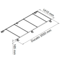 Reling dachowy EuroCarry Adventure Roof do Opel Movano C, Peugeot Boxer, Fiat Ducato i Citroën Jumper (długi rozstaw osi). Wykonany z aluminium, o nośności 200 kg i wymiarach 360x167 cm, idealnie nadaje się do transportu sprzętu kempingowego. Solidna konstrukcja zapewnia bezpieczeństwo i wygodę na wyprawach.