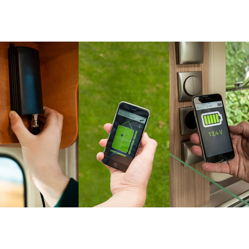Pakiet komfortu E-Trailer to modułowe czujniki E-Gaslevel, E-Waterlevel (40 cm) i E-Temperature do monitorowania gazu, wody oraz temperatury i wilgotności w kamperze. Zapewnia pełną kontrolę nad kluczowymi parametrami, zwiększając wygodę i bezpieczeństwo podróży. Wymaga pakietu startowego – idealny wybór dla fanów smart caravaningu.