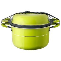Zestaw składanych garnków Brunner Volcano Pasta Al Volvo (ø 24 cm) idealny na kemping: silikonowa składana część, stal nierdzewna, szklana pokrywka z izolowanymi uchwytami. W komplecie garnek, patelnia, pokrywka i sitko do makaronu (waga netto 1,96 kg). Lekki i praktyczny must-have dla podróżników!