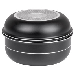 Zestaw garnków Brunner Fusion 7+1 z aluminium i ceramiczną powłoką nieprzywierającą idealnie nadaje się do kempingu – garnki układają się jeden w drugi, oszczędzając miejsce. Kompatybilny z indukcją, zawiera 8 elementów: 2 garnki, 2 patelnie, pokrywki i akcesoria. Lekki (3,45 kg netto) i trwały – must-have dla mobilnej kuchni!