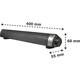 System soundbar Hi-Fi, odpowiedni i zoptymalizowany dla telewizorów Reflexion 19“, 22“ i 24“. Połączenie audio dla gniazda słuchawkowego w telewizorze. Pokrętło z włącznikiem/wyłącznikiem i regulacją głośności. 2 głośniki szerokopasmowe, maksymalnie 2 x 24 W zintegrowany wzmacniacz, pasmo przenoszenia 80 Hz – 18 kHz, zasilanie przez USB 5 V, w zestawie 1 uchwyt do montażu na telewizorze, kable audio i USB. Wymiary szer. 40 x wys. 6 x gł. 5,5 cm, waga 450 g.