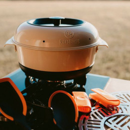 Odpowiedni do pieców kempingowych o średnicy 25 cm. Duże, odporne na ciepło okno podglądowe umożliwia wyraźny widok na proces pieczenia bez konieczności podnoszenia pokrywy. Ciepło pozostaje wewnątrz piekarnika, co zmniejsza zużycie energii i zapewnia równomierne rezultaty.