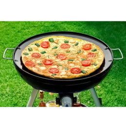 Płyta grillowa CADAC Grill2Braai 40 z żeliwa idealnie pasuje do modeli Citi Chef 40, Carri Chef 40 i E Braai. Jedna połowa do grillowania mięsa, druga do smażenia – z bezpieczną ceramiczną powłoką GreenGrill bez PFOA, reflektorem ciepła i torbą transportową. Lekka (1,9 kg netto) i praktyczna na kempingu!