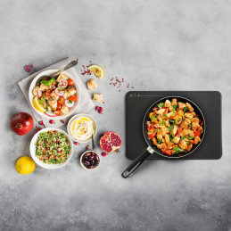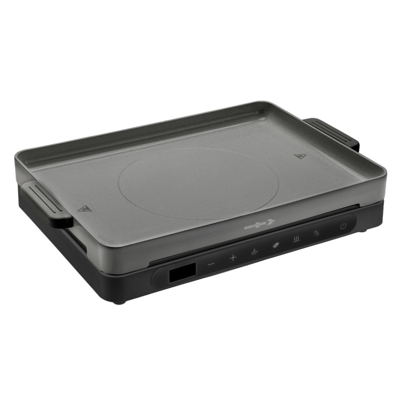Przenośna kuchenka elektryczna/grill z pojedynczą płytą indukcyjną. Solidny i nowoczesny design z obudową z odpornego na ciepło PP oraz wysoce wytrzymałą powierzchnią gotowania z ceramiki szklanej. Idealna do użytku na zewnątrz i na kempingu, dzięki zakresowi gotowania z 9 poziomami mocy (od 300 do 2000 W), wybieranymi za pomocą dotykowych poleceń sterujących i wyświetlacza LED. W zestawie aluminiowa kratka grillowa, zaprojektowana dla równomiernego rozprowadzania ciepła i pokryta ceramicznie od wewnątrz dla naprawdę wyjątkowego grillowania.