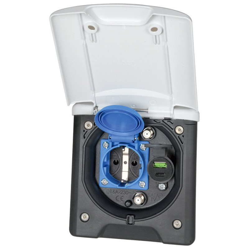 Zewnętrzne gniazdo twin Maxview z połączeniami F i RJ45 w kolorze białym umożliwia elastyczne podłączenie Ethernetu oraz koncentryczne w warunkach kempingowych. Idealne do Roam Basecamp i przenośnych systemów satelitarnych, chroni przed pogodą. Wybierz niezawodne rozwiązanie dla Twojego kampera!