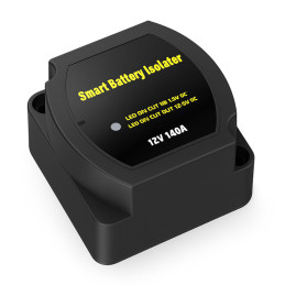 Izolator Baterii Solvian Smart 12V 140A to inteligentny przekaźnik napięciowy (VSR) z cyfrowym wyświetlaczem i wskaźnikami LED, który automatycznie rozdziela i łączy akumulatory w zależności od poziomu napięcia. Idealny do systemów fotowoltaicznych, kamperów, łodzi i pojazdów 12V, zapewnia bezpieczne ładowanie i ochronę przed rozładowaniem baterii...