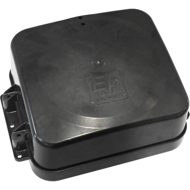 Wytrzymała, bryzgoszczelna skrzynka montażowa E&P do bezpiecznego przechowywania elektroniki sterującej systemu LevelM pod podłogą pojazdu. Chroni delikatne komponenty przed wilgocią, brudem i uszkodzeniami mechanicznymi podczas jazdy.
