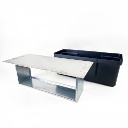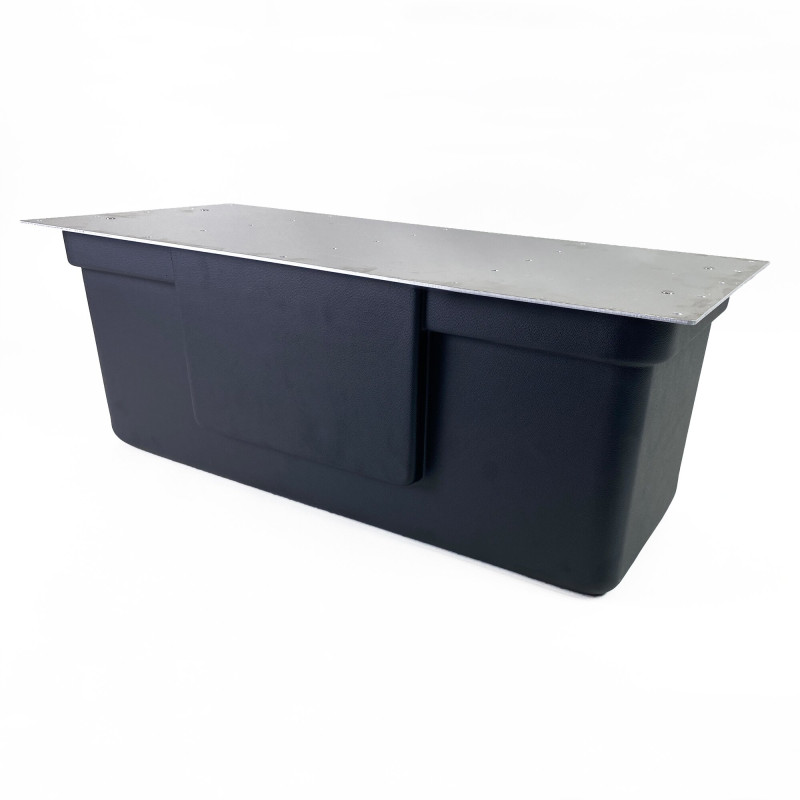 Skrzynka podpodłogowa Linnepe LQH-BOX do oszczędzającego miejsce mocowania jednostki hydraulicznej Quick-Lift pod podłogą pojazdu kempingowego. Chroni jednostkę hydrauliczną przed brudem, wilgocią i uszkodzeniami mechanicznymi podczas jazdy.