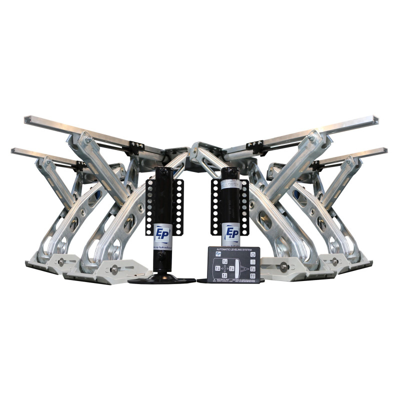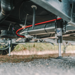 Właściciele przyczep kempingowych muszą zawsze zwracać uwagę na ładowność pojazdu. E&P LevelC to niezwykle lekki system w pełni automatycznego poziomowania: dzięki innowacyjnemu wyborowi materiałów system waży tylko około 20 kg więcej niż mechaniczne podpory korbowe. Obsługa jest dziecinnie prosta: wystarczy nacisnąć przycisk, a przyczepa automatycznie się wypoziomuje. W pierwszym kroku przyczepa jest idealnie wypoziomowana w osi poprzecznej za pomocą dwóch hydraulicznych podpór osiowych. Następnie precyzyjnie poziomowana jest w osi podłużnej za pomocą czterech hydraulicznych podpór big-foot, działających parami w narożnikach. Podpory osiowe można również kontrolować indywidualnie w przypadku specjalnych wymagań.