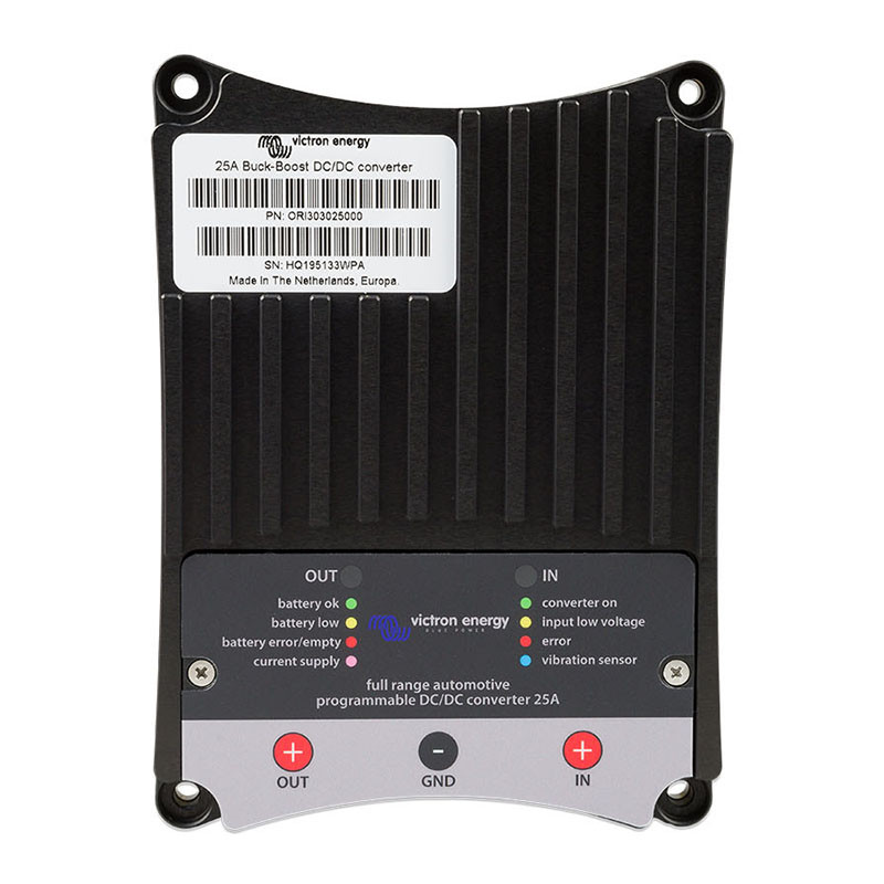 Victron Buck-Boost 50A to wydajna ładowarka akumulatorów hotelowych zasilana z alternatora w pojazdach Euro 5 i 6. Automatycznie wykrywa pracę silnika, obsługuje instalacje 12/24V i zapewnia wysoką sprawność. Idealna do kamperów i pojazdów specjalnych.