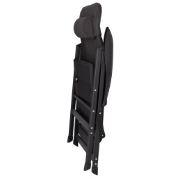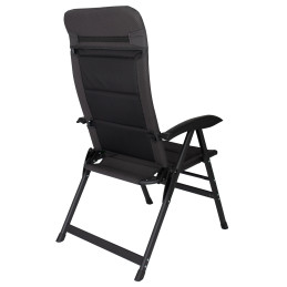 Wygodny fotel kempingowy z wyjątkowo szerokim siedziskiem i wysokim oparciem z poduszką. Wzmocniona rama typu D wykonana z aluminium może udźwignąć do 140 kg. Materiał siedziska wykonany jest z wyściełanego materiału Air-Mesh, co sprawia, że fotel jest wyjątkowo wygodny. Oparcie jest regulowane w 6 pozycjach i wyposażone w regulowany zagłówek. Opcjonalnie dostępny jest podnóżek.