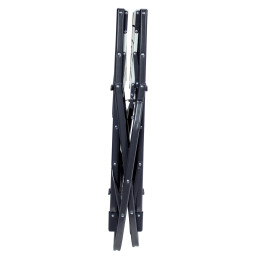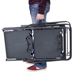 Krzesło składane z nowym stelażem zapewniającym minimalny rozmiar po złożeniu. Malowana proszkowo rama stalowa, powlekana tkanina poliestrowa. Torba transportowa w zestawie.