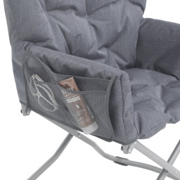 Z wyściełanym składanym fotelem Grenada Lake od Outwell poczujesz się jak w domu wszędzie. Fotel szybko składa się na płasko, gdy nie jest potrzebny. Jego miękka, zdejmowana wyściółka zapewnia komfort i wsparcie w odpowiednich miejscach. Praktyczna kieszeń do przechowywania zwiększa atrakcyjność fotela.