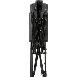 Krzesło składane Brunner Raptor 3D w kolorze czarnym to wygodne i stabilne rozwiązanie kempingowe z wyściełanym, oddychającym pokrowcem z 100% poliestru, który szybko schnie. Rama ze stali malowanej proszkowo zapewnia nośność do 110 kg i doskonałą stabilność. Wymiary po rozłożeniu: 51x90x44 cm, waga netto 4,6 kg – idealne do transportu.