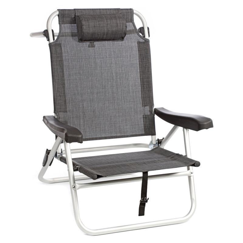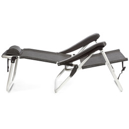 Aluminiowy leżak plażowy z 4-stopniową regulacją oparcia i poduszką na kark dla dodatkowego wsparcia. Lekki i łatwy do transportu. Idealny do relaksu i cieszenia się słońcem przy basenie lub na plaży.