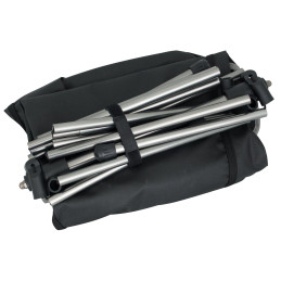 Lekki składany fotel o małych wymiarach po złożeniu. Solidny i wygodny. Mieści się w każdym plecaku i torbie rowerowej. Wstawki z siatki są oddychające i zapewniają dobrą wentylację. Łatwy i szybki w rozstawieniu. W zestawie torba transportowa.