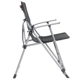 Krzesło składane Brunner Raptor Recliner w kolorze szarym oferuje wygodę dzięki regulowanemu oparciu w 3 pozycjach i szerokim nakładkom na nogi dla stabilności. Nośność do 120 kg, waga 6,34 kg, wymiary po rozłożeniu: 102 cm wys., 51 cm szer., 45 cm gł. Idealne do kempingu – kompaktowe i trwałe z poliestrowym obiciem i stalowym stelażem.