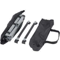 Lodówki przenośne można ustawić na wygodnej wysokości na tym stojaku do lodówek. Charakteryzuje się solidną ramą, antypoślizgowymi i regulowanymi wspornikami oraz zdejmowaną torbą do przechowywania. Maksymalne obciążenie wynosi 50 kg. W zestawie znajduje się praktyczna torba transportowa. Wymiary szer. 40 x wys. 34,5 x gł. 50 cm, waga 2,5 kg.