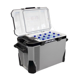 Lodówka przenośna oferuje praktyczny schładzacz zamiast klasycznej komory na świeże produkty. Temperaturę można płynnie regulować, co czyni lodówkę wszechstronną w użyciu jako chłodziarka lub zamrażarka. Innowacyjna funkcja no-frost zapobiega kondensacji, a dzięki elektronice nie wymaga zwiększonego prądu rozruchowego, co czyni ją idealną do użytku mobilnego.