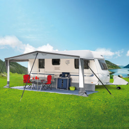 Idealna markiza dla wszystkich kamperów dbających o cenę, wyposażona w wszechstronne opcje napinania przeciwsztormowego. Można ją naciągnąć od wewnątrz za pomocą elastycznych drabinek napinających. Dzięki dołączonej podwójnej rurze nie potrzebujesz śrub do przymocowania markizy do przyczepy kempingowej.