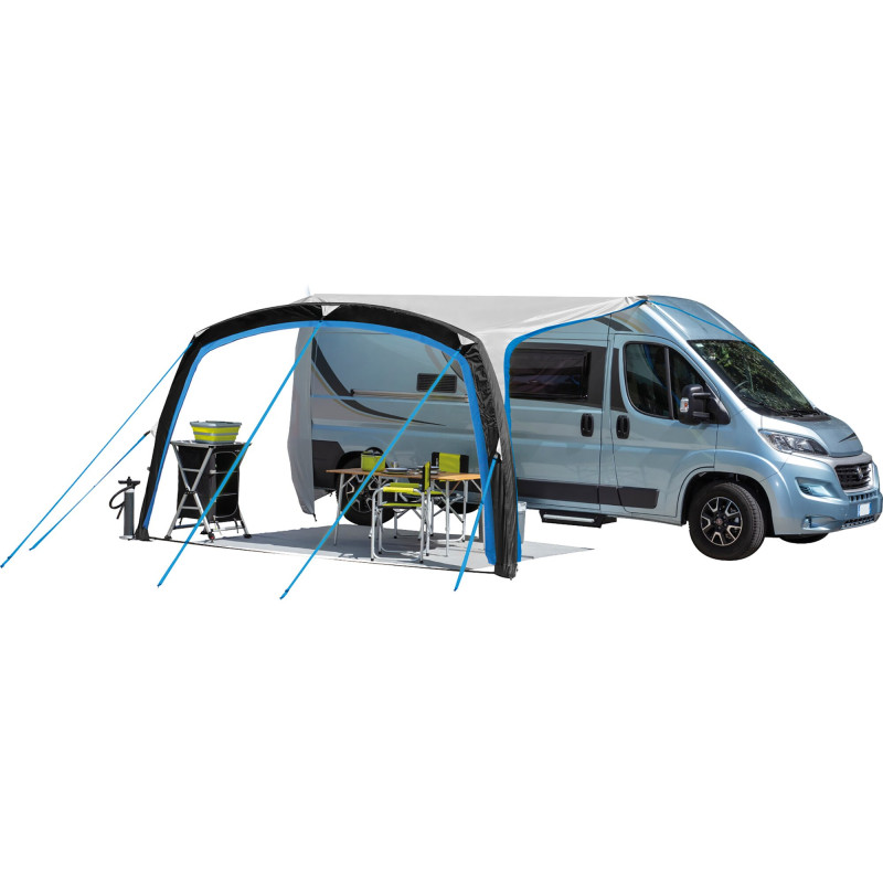 Daszek przeciwsłoneczny Quick'n Easy Air to nadmuchiwana markiza do przyczep kempingowych (wysokość relingu 230–255 cm). Łatwy w montażu dzięki systemowi zaworów, lekki, z odporną na UV tkaniną Weathertex 150D. Idealny na krótkie wyjazdy.