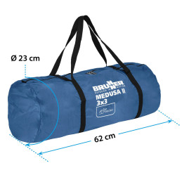 Pawilon z zewnętrznymi słupami ze stali i włókna szklanego. Łatwy w montażu. Lekki. W zestawie dwie odpinane ścianki boczne i torba. Materiał: poliester 68D PU. Dostępny w 2 rozmiarach/kolorach. Słupy: średnica 13 mm GRP, średnica 19 mm stal