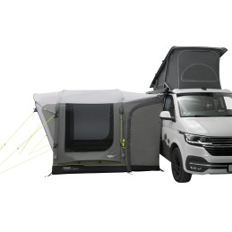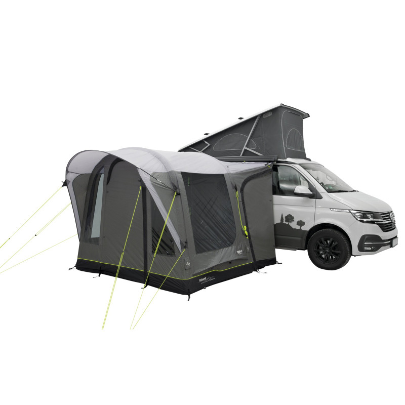 Markiza Newburg 160 Air to kompaktowa, nadmuchiwana markiza do furgonetki, łatwa w szybkim rozstawieniu. Posiada drzwi z moskitierą, zasłaniane okna i przestrzeń 260 x 160 cm z możliwością powiększenia.