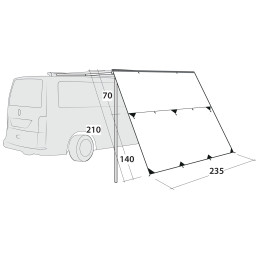 Dach przeciwsłoneczny Outwell Hillcrest Tarp może być używany jako prosta płócienna markiza. Wciąga się go do szyny markizy w kamperze i naciąga do przodu za pomocą dołączonych drążków. Alternatywnie, można go również przymocować do szyny rynnowej markizy, zapewniając dodatkową ochronę przed słońcem i deszczem. W mgnieniu oka przekształca proste schronienie w wygodną, zacienioną przestrzeń życiową, zapewniającą ochronę i prywatność wewnątrz. Po zamocowaniu z drugiej strony, zacieniona przestrzeń jest szczególnie korzystna dla lodówki i jej wydajności. Można go również częściowo zwinąć i zabezpieczyć kołkami. Nawet wtedy nadal zapewnia ochronę przed czynnikami atmosferycznymi.