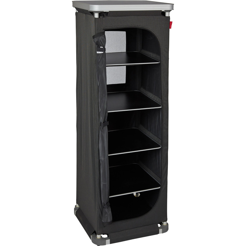 Modułowa szafka kempingowa Westfield ModuCamp L w kolorze antracyt (152x62x49 cm) z aluminiową ramą zapewnia wysoką stabilność i nośność do 30 kg. Łatwy montaż, regulowane półki, nóżki i otwór na butlę gazową pozwalają na dowolną konfigurację z innymi modułami. Idealna do kampera – waży tylko 9,1 kg i pakuje się do torby.