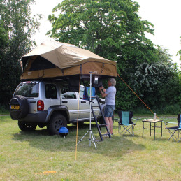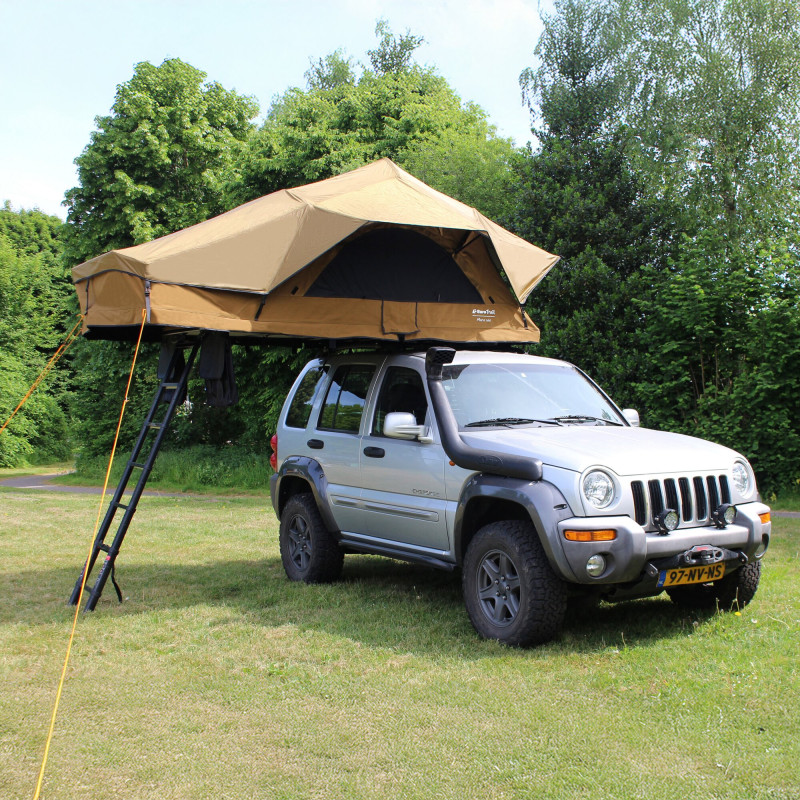 Namiot dachowy Mara łączy przemyślany design z wysokiej jakości materiałami i jest dostępny w szerokościach 140 cm i 160 cm. Innowacyjna konstrukcja podstawy z aluminiowym rdzeniem w kształcie plastra miodu oraz płytą kompozytową na górze i dole skutkuje znacznym zmniejszeniem wagi oraz techniczną konstrukcją podstawy bez otwartej ramy: brak punktów przeciągowych, stabilniejsze ustawienie, brak wchłaniania wilgoci ani brudu na spodzie materaca podczas transportu, a także lepsza izolacja. Namiot jest efektywnie zaprojektowany, boczne markizy automatycznie rozkładają się po otwarciu i są ustawiane za pomocą dostarczonych masztów. Dostęp do zadaszonego przedsionka namiotu można uzyskać za pomocą zintegrowanej aluminiowej drabiny. Materac, oświetlenie LED, okno dachowe, drabina teleskopowa (230 cm), zestaw montażowy, torba na buty i siatka przeciw komarom są zawarte w zestawie dostawy.