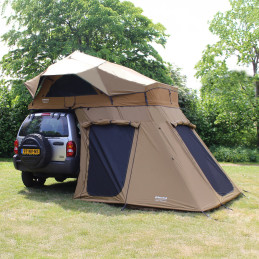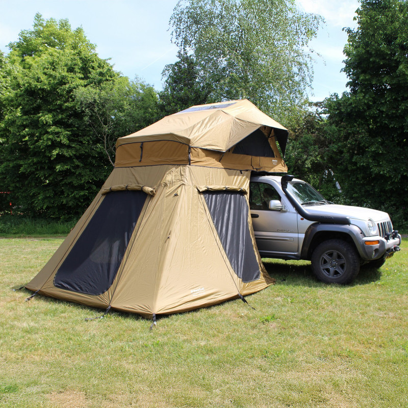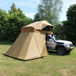 Aneks do namiotu dachowego Mara soft-top zapewnia dodatkową przestrzeń do przechowywania oraz większą prywatność. Zintegrowana siatka przeciw komarom chroni przed owadami i wspiera wentylację. Instalacja jest prosta, ponieważ aneks mocuje się, wsuwając go na dolną listwę namiotu dachowego.
