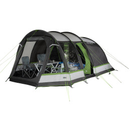 Rodzinny namiot tunelowy z wszytą podłogą, która chroni przed wilgocią, brudem i pełzającymi zwierzętami. Część dzienna o wysokości 2 m zapewnia miejsce na sprzęt kempingowy. Dwa wejścia z gazy i dwa stałe otwory wentylacyjne zapewniają wentylację części dziennej i chronią przed uciążliwymi owadami. Cztery panoramiczne, przezroczyste okna z folii zapewniają mnóstwo światła w części dziennej. Zasłony chronią przed ciekawskimi spojrzeniami. Dach ma aluminiową powłokę i odbija ciepło. 3-stopniowa wentylacja High Peak „Dual Flow” w części sypialnej idealnie dostosowuje się do każdej pogody. 1. Noce tropikalne: otwórz duże okno z moskitierą na 100%. 2. Bezdeszczowa pogoda: otwórz klapę pokrowca zmiennie w zakresie 30–50% w zależności od potrzeb. 3. Zła pogoda: zamknij klapę pokrowca na 100%. Pod klapą pokrowca znajduje się stała wentylacja. Bardzo mocne zamki błyskawiczne z osłoną. Bardzo stabilne, stalowe śledzie o grubości 5 mm nie wyginają się nawet na twardym podłożu. Szwy uszczelnione są taśmą, dzięki czemu są wodoszczelne i nie rozrywają się łatwo. Wejście na kable z zamkiem błyskawicznym i prowadzenie kabli do oświetlenia. Przyciemniany namiot wewnętrzny z systemem Vario Vent Control. 2 wejścia z moskitierą chronią przed uciążliwymi owadami i można je wygodnie obsługiwać zmiennie od wewnątrz, w zależności od pogody. Zapinana na zamek ścianka działowa umożliwia podział namiotu wewnętrznego na dużą kabinę lub 2 sypialnie. 2 uchwyty na lampy kempingowe lub latarki dopełniają całości. komfort.