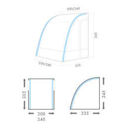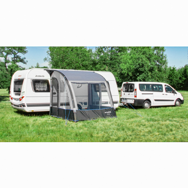 Częściowy namiot Siena to lekka markiza do przyczep kempingowych, łatwa w montażu dzięki jednemu drążkowi łukowemu. Ściany są zdejmowane, a okna mają folie i osłony. Solidny daszek chroni przed deszczem i słońcem.