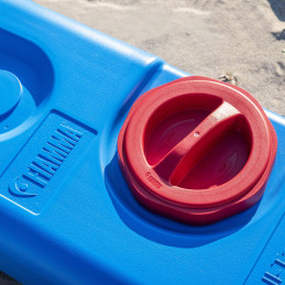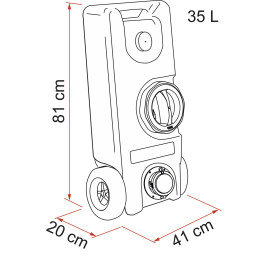 Zbiornik na świeżą wodę z zagłębionym, wygodnym uchwytem i dwoma solidnymi kółkami ułatwiającymi transport nawet na nierównych powierzchniach. Wykonany z nietoksycznego tworzywa sztucznego. Duży otwór do czyszczenia. Pokrywa z zamkiem bagnetowym i przyłączem węża do napełniania pojemnika, dostępne również jako akcesorium.