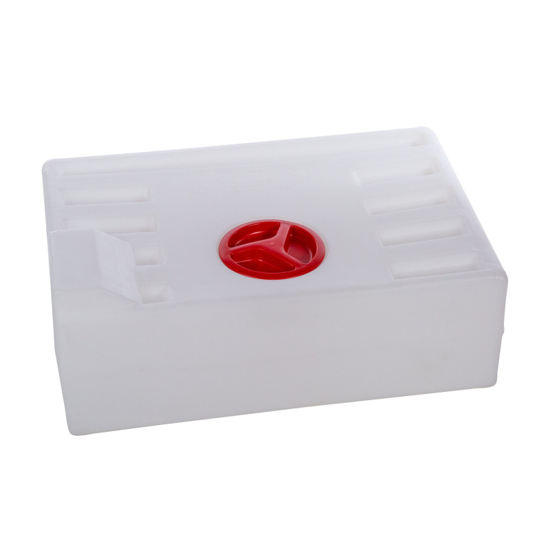 Zbiornik na świeżą wodę z HDPE, bezpiecznego dla żywności, z pokrywami NW 61 i NW 170. Wyposażony w dyszę z korkiem ¾", klucz, uchwyty montażowe oraz otwór dolny do opróżniania zimą.
