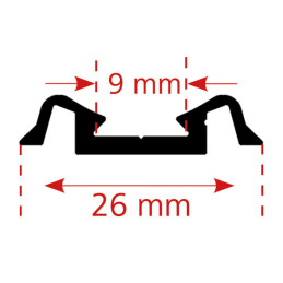 Aluminiowy profil rury giętej Hüttenbrauck w kolorze czarnym o długości 5 m z szyną kedrową i rowkiem. Służy do montażu daszków, markiz lub klap przeciwsztormowych w kamperach i przyczepach kempingowych. Wytrzymały materiał zapewnia trwałość. Waga 220 g.